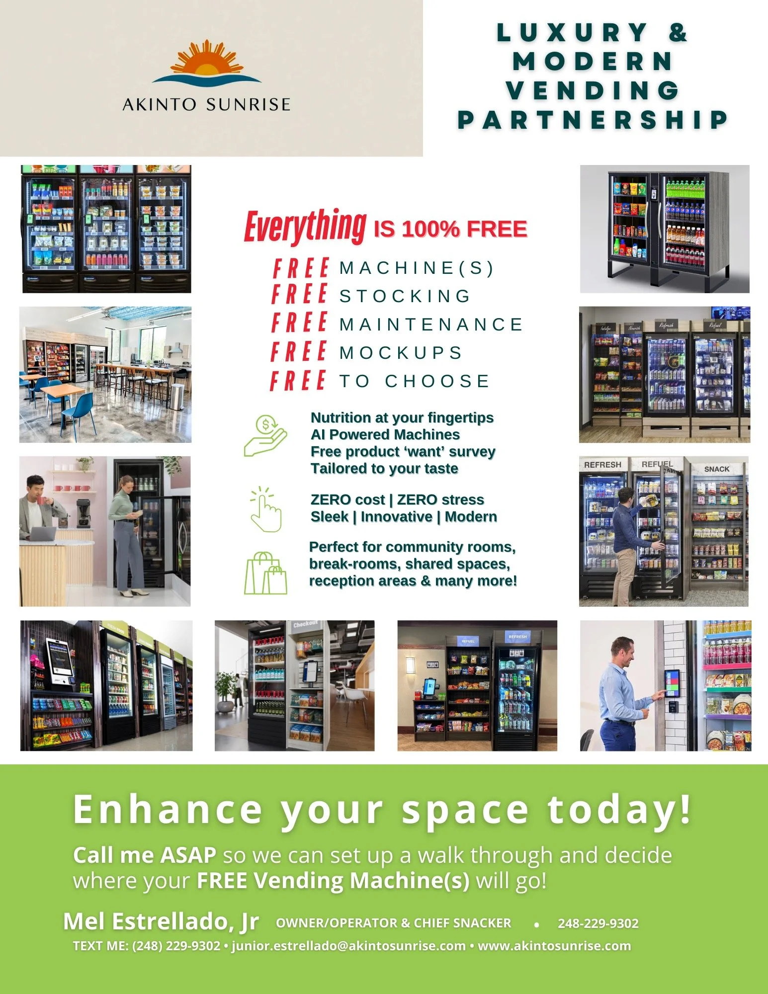 Welcome to Akinto Sunrise, a family company dedicated to making workplaces, schools, and community spaces more convenient and enjoyable. We believe vending should be simple, friendly, and dependable — just like a good neighbor.